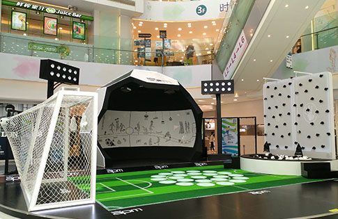 北京apm商業中心是一個人流量集中的大型購物商場。在世界杯期間,晟跡創意將多媒體互動技術融入,在這里你可以體驗到互動魔法墻、互動攀巖墻、地面互動跑酷帶來的樂趣。