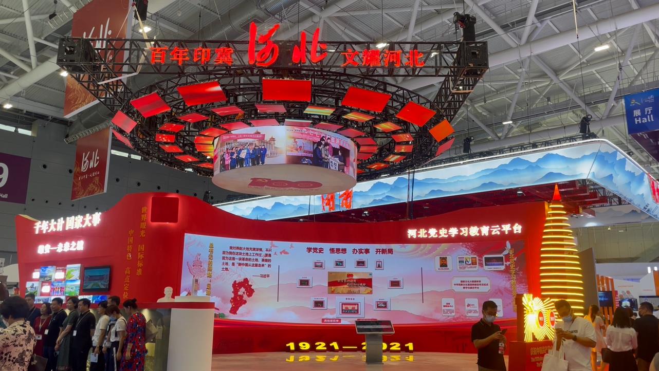 深圳文博會河北主展區面積533平方米,以百年印記、文耀河北為主題。展區整體造型以雪如意、西柏坡、雄安融合塔等河北特色符號作為展區設計元素,展示河北建設文化成就。