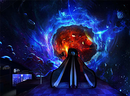 采用多通道融合方案,利用多臺投影畫面拼接,打造出動態版虛擬場景讓人有身臨其境的感覺。