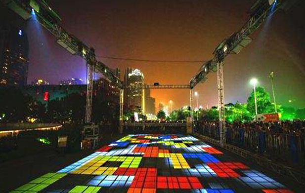 地面投影融合互動主要通過捕獲設備(傳感器)來捕獲人,然后對其進行分析以產生各種動作。這些動作與基于運動數據的實時圖像交互系統相結合,使參與者能夠與地面交互。地面投影系統軟件將提供交互式感應和圖像顯示的組合,所有特殊程序將同步圖像生成和交互式感應。