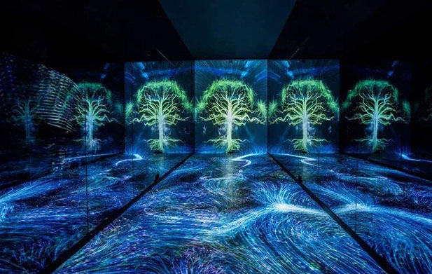 沉浸式交互式投影是許多交互式投影應用程序之一。它以原有的交互式投影技術為基礎,結合聲音,燈光,煙霧等,創造出覆蓋觀眾全視角的美麗影像,為游客營造身臨其境的體驗。讓自己沉浸在有趣,夢幻的體驗中。